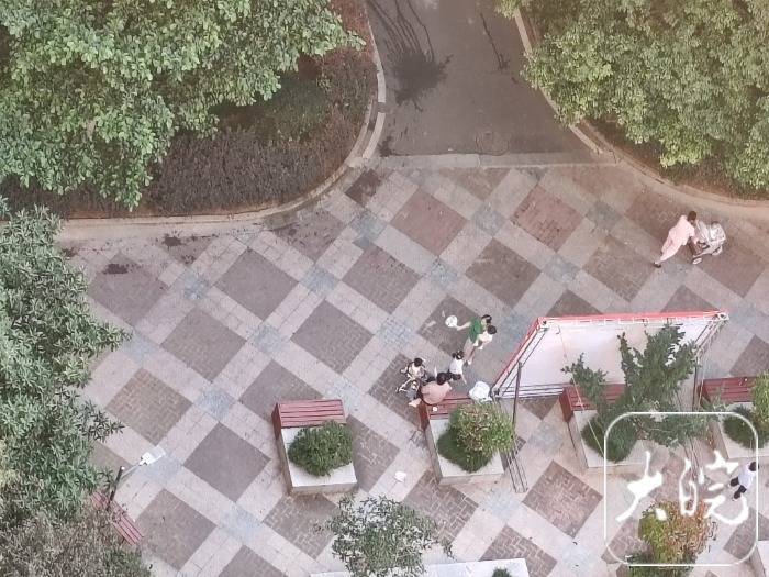 r9日下午,合肥市一小区里,带娃的市民手里还拿着扇子。
