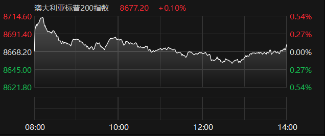 7月22日,澳大利亚标普200指数收涨0.10%,报8677.20点。